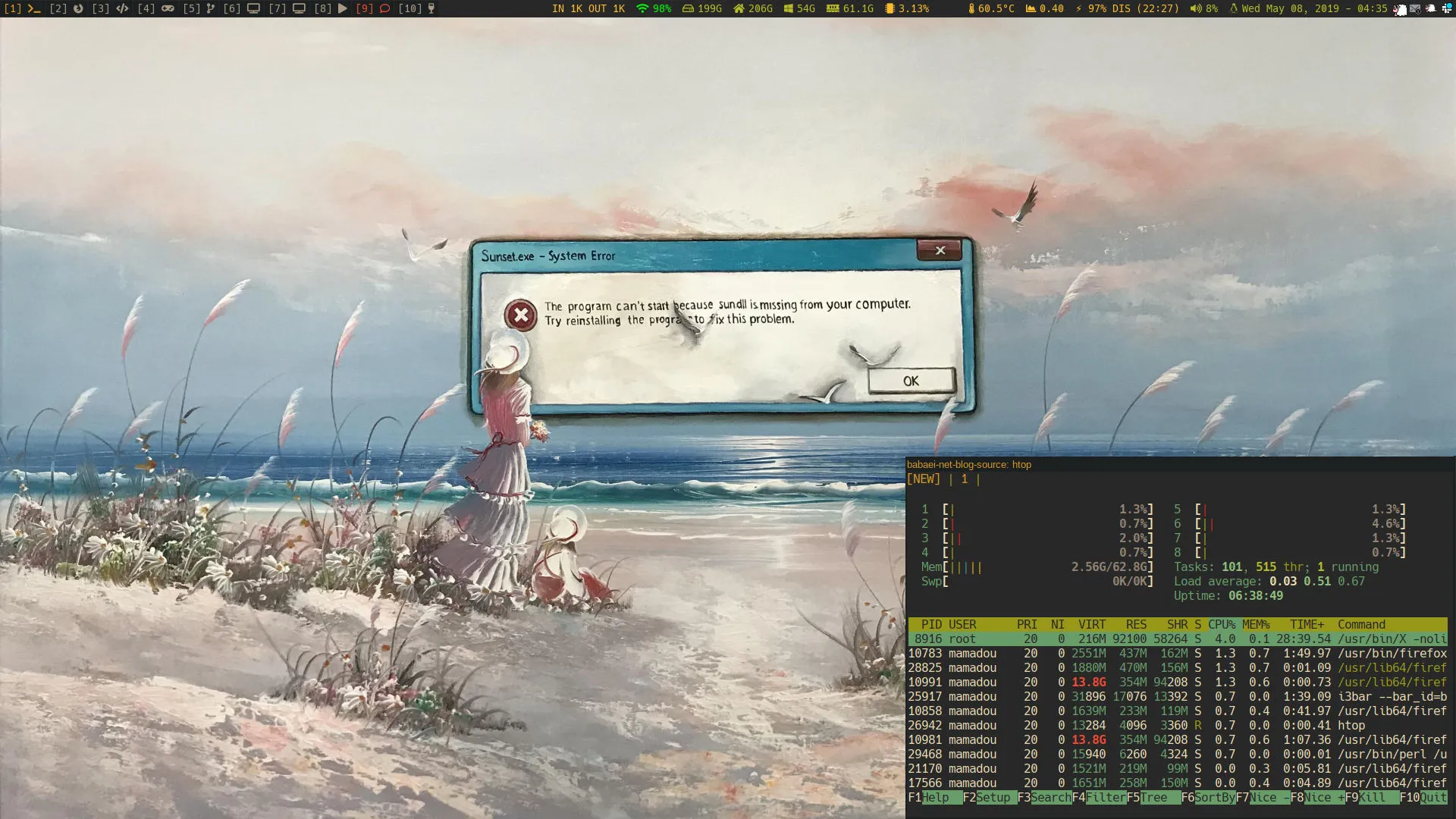 Naturally, my first attempt was running it inside a Windows 7 virtual machine under VMWare Workstation for Linux which supports up to Direct3D 10 (the exact API used by COD4). Sadly, the experience was very poor and painful with lots of unbearable stuttering on my decent hardware. Thus, the last resort was running it under Wine, which I used to happily run many Windows applications and games under it for many years. Though, throughout those years I replaced almost every Windows application with an equivalent or an alternative Linux application until I gradually stopped using it. In the meanwhile, I also distanced myself from traditional desktop environments such as GNOME, KDE, Xfce, and LXDE, while experimenting with various window managers specially i3wm, which caught my attention for many good reasons. So, in the end I made up my mind and alienated myself from desktop environments once and for all.